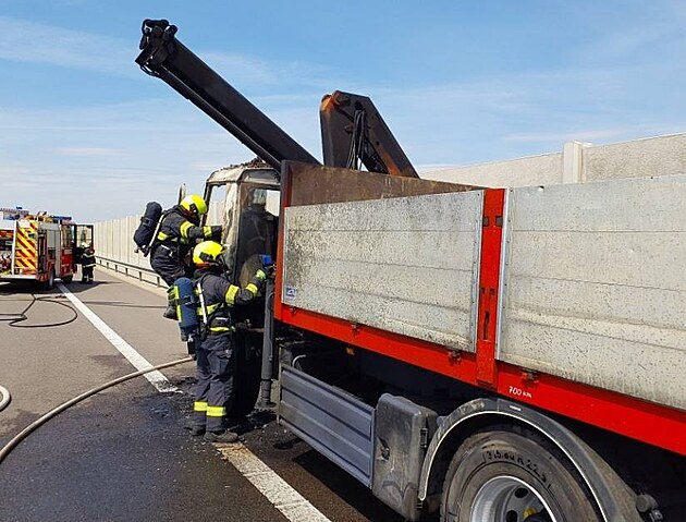 Požár nákladní soupravy uzavřel ve středu odpoledne v Pardubickém kraji dálnici D35 na 148. kilometru ve směru na Hradec Králové. (14. května 2025)