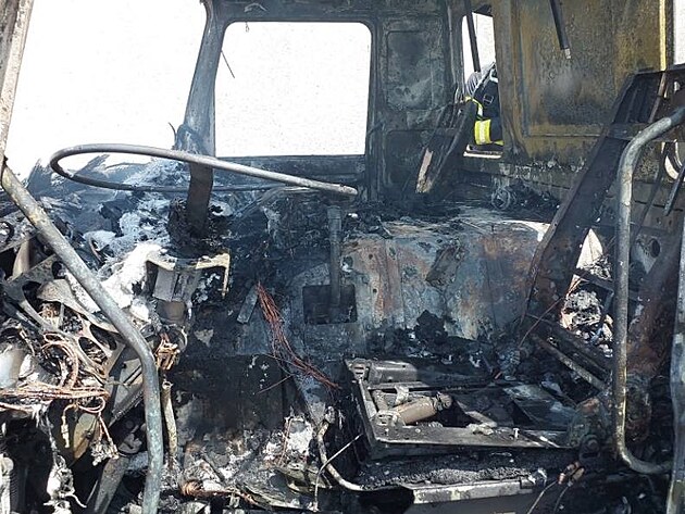 Požár nákladní soupravy uzavřel ve středu odpoledne v Pardubickém kraji dálnici D35 na 148. kilometru ve směru na Hradec Králové. (14. května 2025)