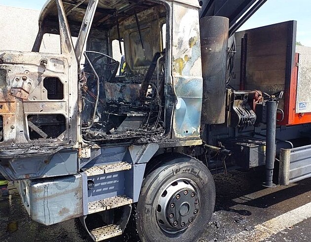 Požár nákladní soupravy uzavřel ve středu odpoledne v Pardubickém kraji dálnici D35 na 148. kilometru ve směru na Hradec Králové. (14. května 2025)