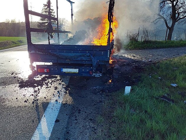 Dodávku převážející autodíly hasily tři jednotky hasičů. (16. dubna 2025)