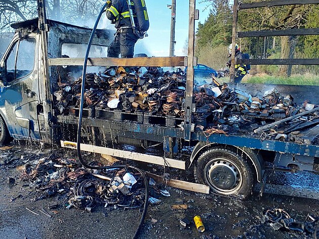 Dodávku převážející autodíly hasily tři jednotky hasičů. (16. dubna 2025)