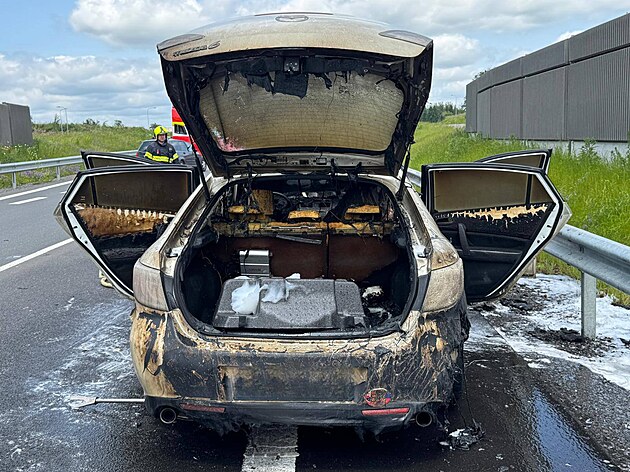 Na obchvatu Svitav hořel osobní automobil Mazda 6. Osádka vozidla stihla zachránit osobní věci na poslední chvíli. (11. června 2025)