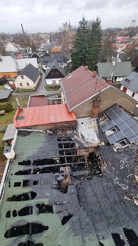 K požáru prodejny došlo v těsném sousedství památkově chránéné čtvrti Betlém. (5. prosince 2025)