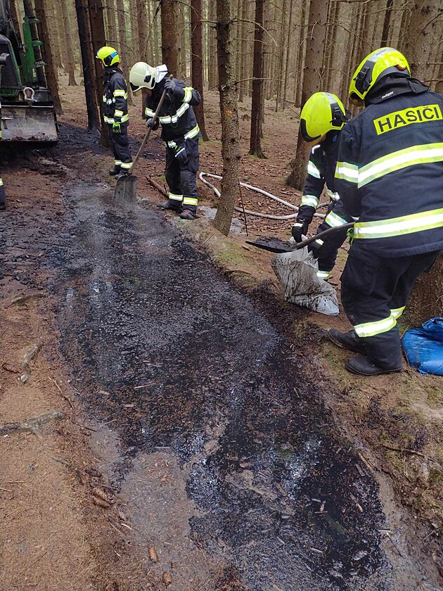 V lese na Svitavsku hořel dřevařský vůz, uniklo 100 litrů hydraulického oleje (7.dubna 2025)