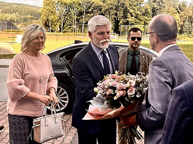 Prezident Petr Pavel s manželkou Evou přijeli na návštěvu do Pardubického kraje lehce před půl desátou ráno. (17. září 2025)