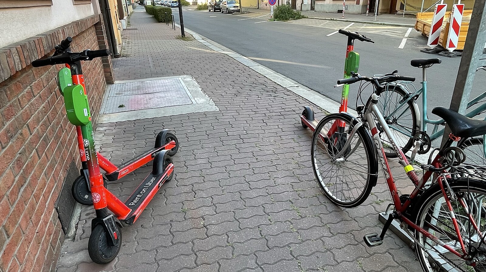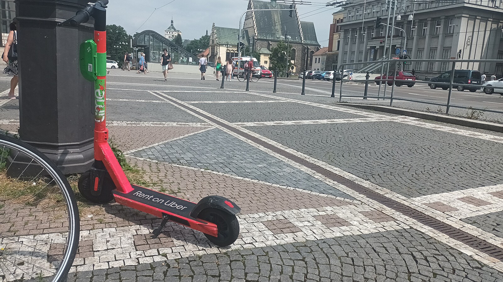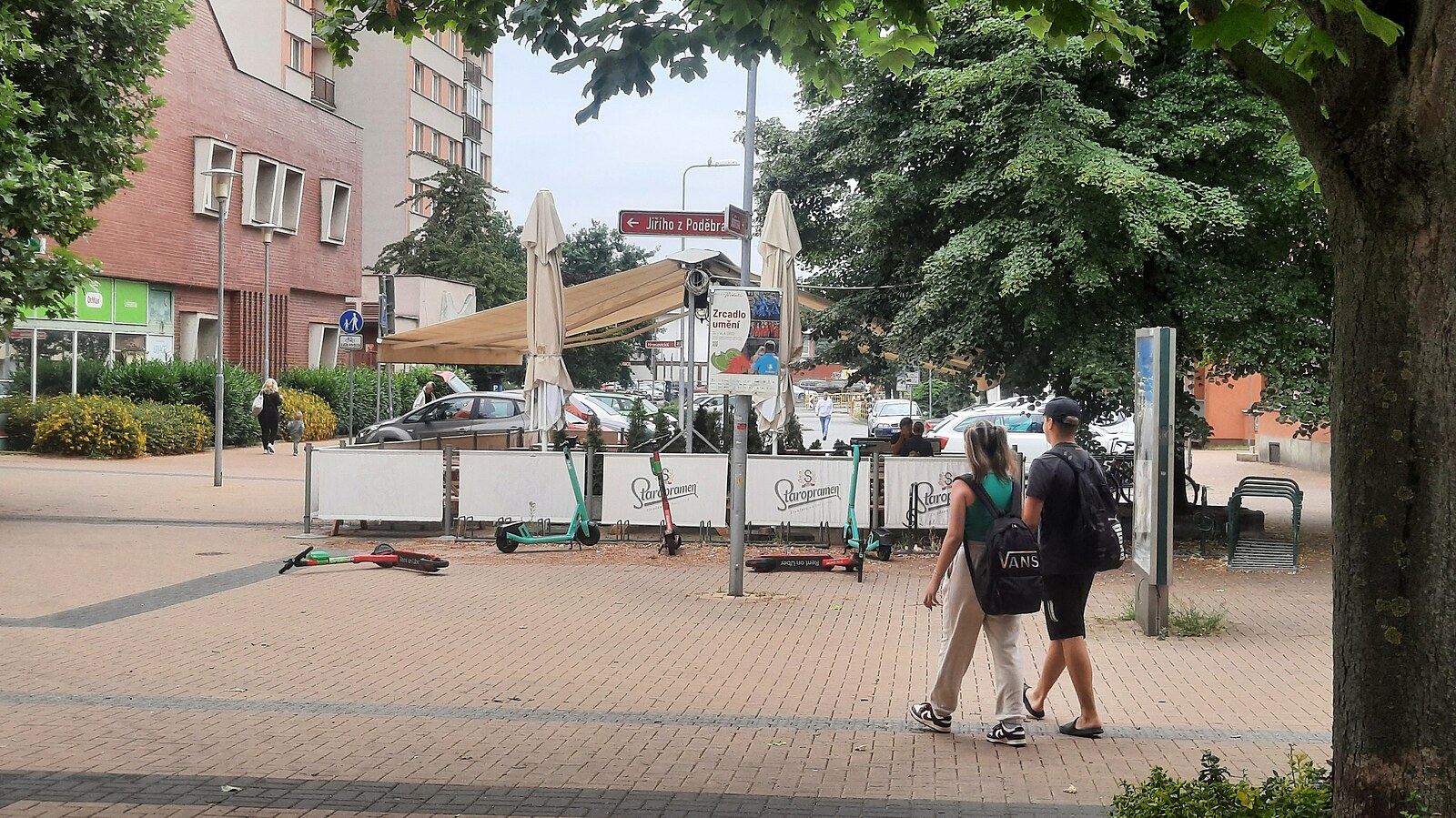 Pohozené koloběžky nebo stroje blokující stojany na kola je možné v Pardubicích na Karlovině vidět téměř každý den.