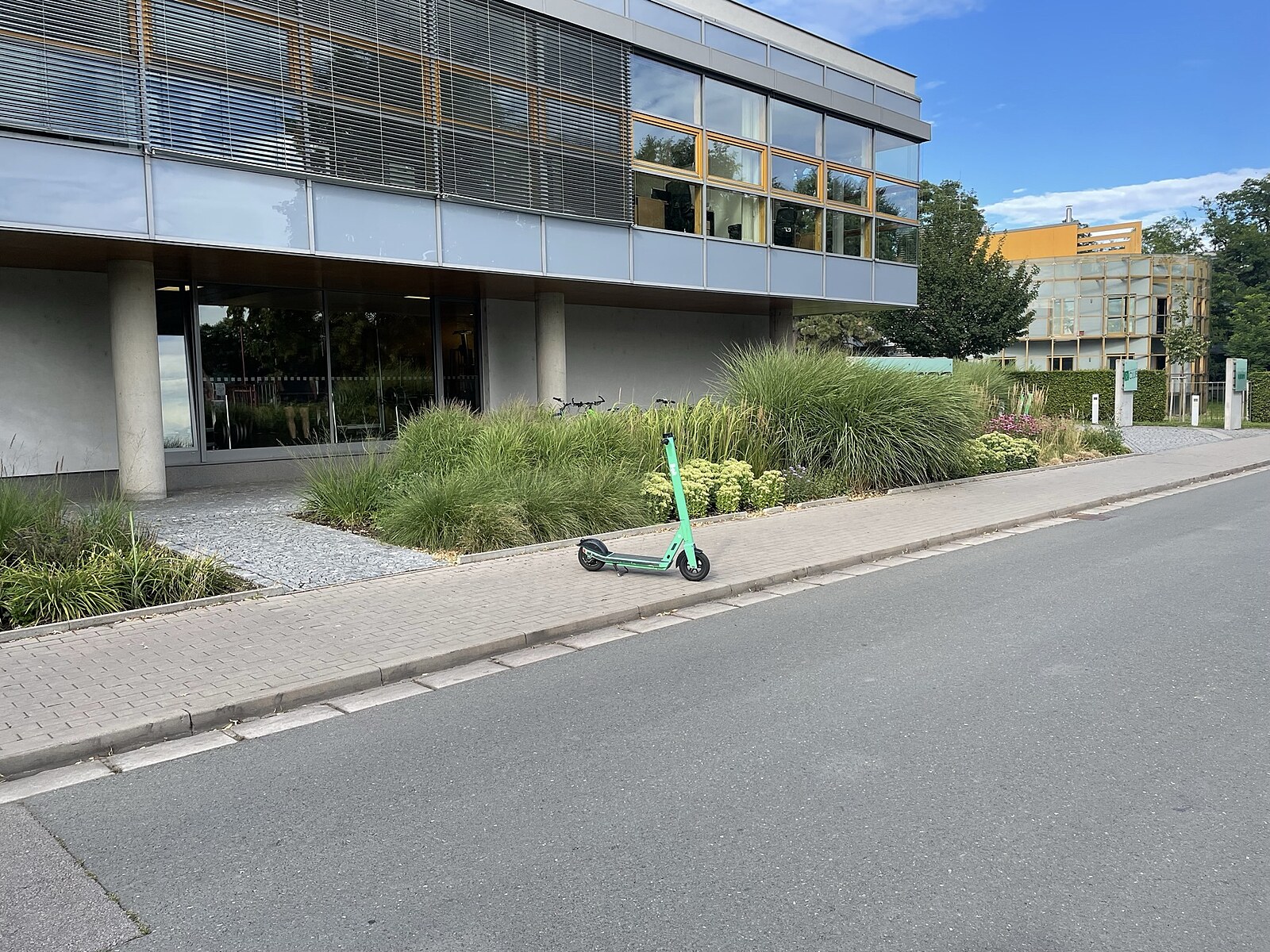 Sdílené koloběžky v Pardubicích často blokují stojany pro kola nebo stojí rovnou uprostřed chodníku.