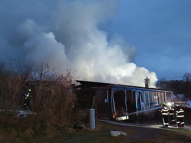 Požár rodinného domu a přístřešku Žampach na Orlickoústecku (7. dubna 2025)