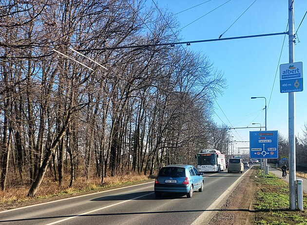 Nový obchvat Pardubic vyústí před Globusem, kde silnice nestačí už dnes. Ve špičkách se zde tvoří kolony. (4. února 2025)
