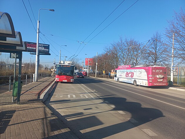 Nový obchvat Pardubic vyústí před Globusem, kde silnice nestačí už dnes. Ve špičkách se zde tvoří kolony. (4. února 2025)