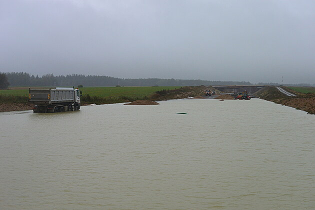 Staveniště dálnice D35 u Opatovce zaplavila voda. (14. září 2024)