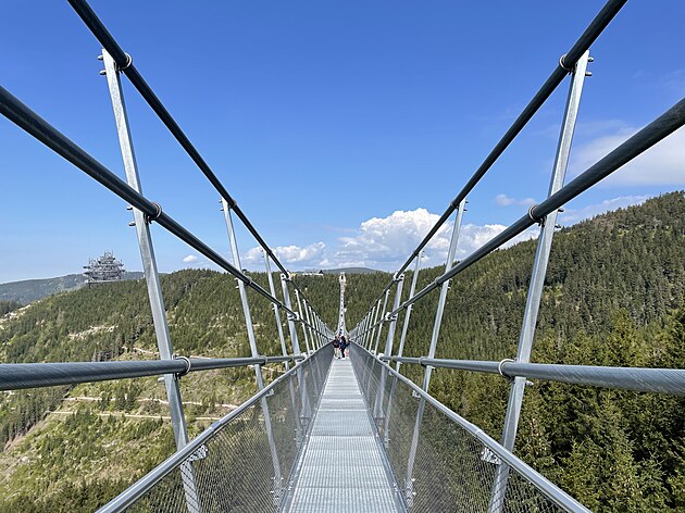 Visutá lávka na Dolní Moravě spojuje v nadmořské výšce 1 110 metrů nad mořem hřebeny Slamníku a Chlumu.