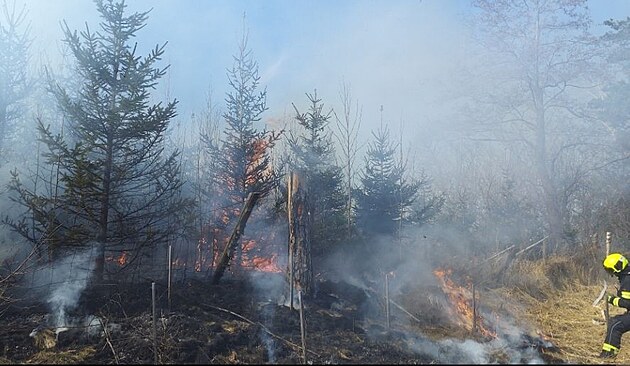 U požáru lesa na Hlinecku zasahovalo pět hasičských jednotek. (10. března 2025)