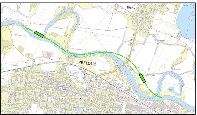 Splavnění Labe ve variantě C2. Rozdíl mezi variantou C1 a C3 spočívá v tom, že druhá v pořadí počítá se zasypáním původního koryta. Původní a již zavržená varianta by přeťala slepé rameno Labe, takzvané Slavíkovy ostrovy.