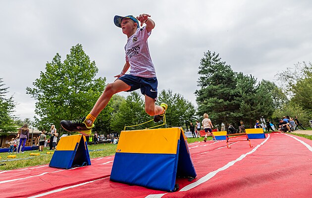 Zájem o Sportovní park každoročně roste. Organizátoři letos přidali i nová stanoviště, na medaili jich děti musely projít 18. (5. srpna 2025)