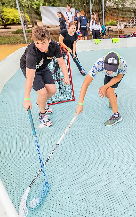 Ve Sportovním parku měly tradičně svá stanoviště jednotlivé sportovní kluby z Pardubic. Třeba florbalisté. (5. srpna 2025)