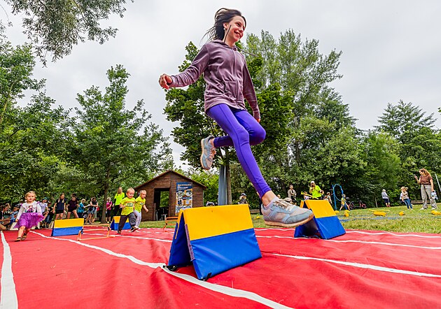 Zájem o Sportovní park každoročně roste. Organizátoři letos přidali i nová stanoviště, na medaili jich děti musely projít 18. (5. srpna 2025)