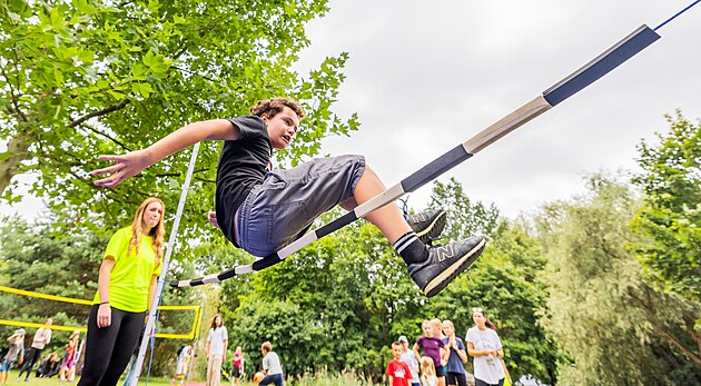 Zájem o Sportovní park každoročně roste. Organizátoři letos přidali i nová stanoviště, na medaili jich děti musely projít 18. (5. srpna 2025)