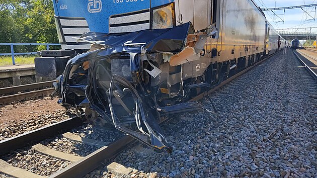 Do auta na přejezdu narazily vlaky z obou směrů. Zastavil se hlavní koridor. (4. září 2025)