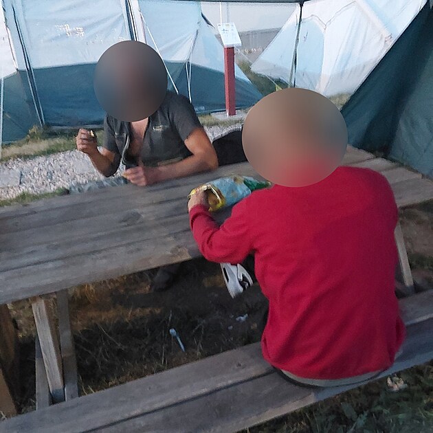 Kempování ve vystaveném stanu u obchodního domu se hledanému muži nevyplatilo. Ze stanu putoval rovnou do cely. (7.července 2025)