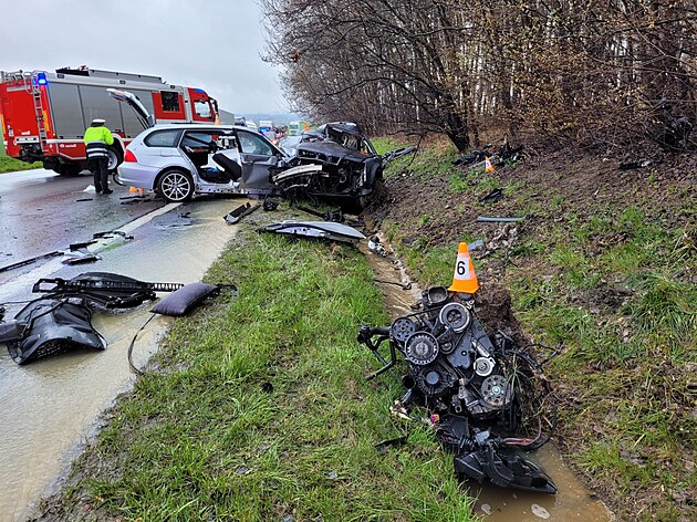 Při nehodě tři lidé zemřeli, další dva transportovaly do nemocnice záchranářské vrtulníky. (14. dubna 2023)
