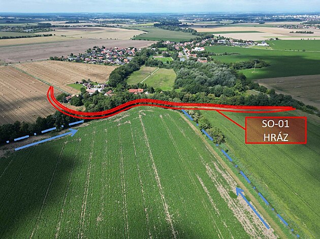 Na leteckém snímku je vidět, kde u obce Dřenice vyroste hráz suchého poldru.