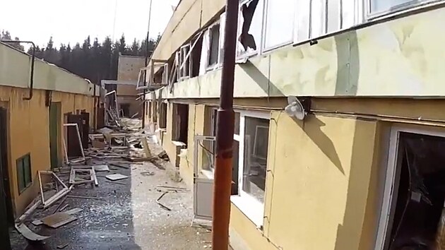 Vyražená okna, na zemi sklo. Policie ukázala zkázu po výbuchu v muničce