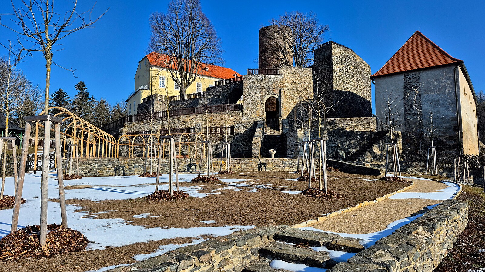 Výrazným prvkem bude nový mišpulový háj, v užitkové části našly své místo bylinky a okrasnou část budou tvořit hlavně záhony růží. Loni na podzim vznikl i nový vinohrad. Květinová výsadba s některými bylinkami bude dokončena na jaře. Původní dřevěný altánek, který nevyhovoval nové koncepci zahrady, byl přestěhován k Domu zbrojnošů. O příjemné posezení s krásným výhledem na údolí řeky Křetínky však návštěvníci nepřijdou.
