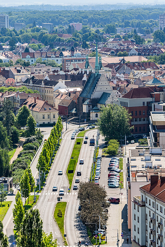 Za pěkného počasí jsou z ochozu telekomunikační věže v téměř sedmdesátimetrové výšce úchvatné výhledy nejen na Pardubice, ale i na vzdálenější místa. (13. června 2025)