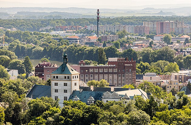Za pěkného počasí jsou z ochozu telekomunikační věže v téměř sedmdesátimetrové výšce úchvatné výhledy nejen na Pardubice, ale i na vzdálenější místa. (13. června 2025)