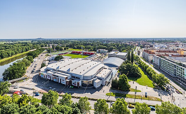 Za pěkného počasí jsou z ochozu telekomunikační věže v téměř sedmdesátimetrové výšce úchvatné výhledy nejen na Pardubice, ale i na vzdálenější místa. (13. června 2025)