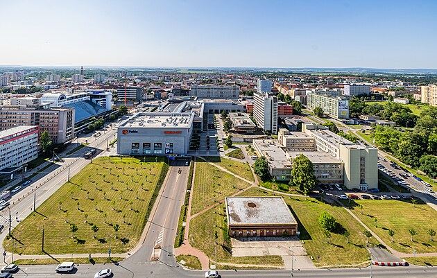 Za pěkného počasí jsou z ochozu telekomunikační věže v téměř sedmdesátimetrové výšce úchvatné výhledy nejen na Pardubice, ale i na vzdálenější místa. (13. června 2025)
