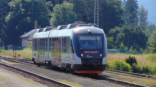 Motorová jednotka Alstom Lint 41 společnosti Leo Express ve stanici Dolní Lipka