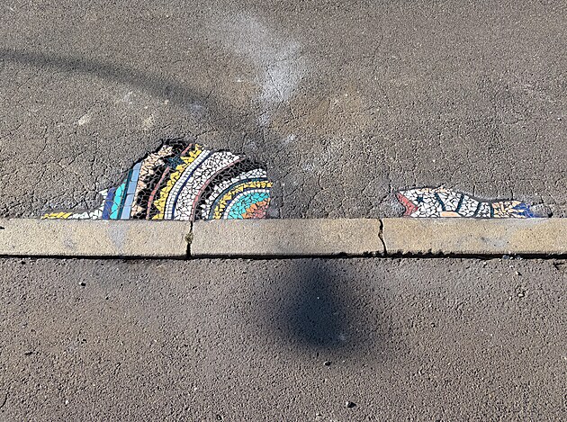 Mozaika ve tvaru ryby u pardubické Ponorky (22. července 2025)