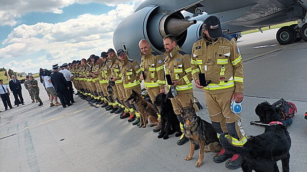 Návrat českých hasičů z mise v americkém Texasu na letiště v Pardubicích (23. července 2025)