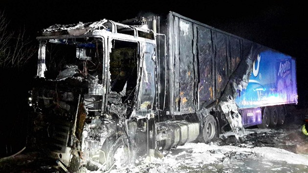 „Škoda byla předběžně vyčíslena takto - na tahači 100 tisíc korun, na návěsu 300 tisíc korun a na nákladu je škoda 500 tisíc korun. Příčinu vzniku požáru nyní zjišťuje vyšetřovatel hasičů,“ dodala Vendula Horáková.
