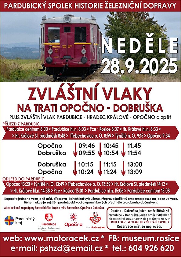 Pozvánka na jízdu historického motoráčku v trase Pardubice – Třebechovice - Dobruška 28. září 2025. (23.září 2025)