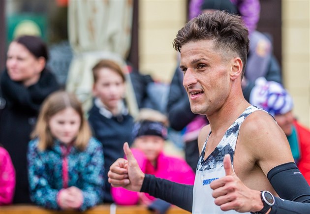 Jiří Homoláč v cíli pardubického půlmaratonu