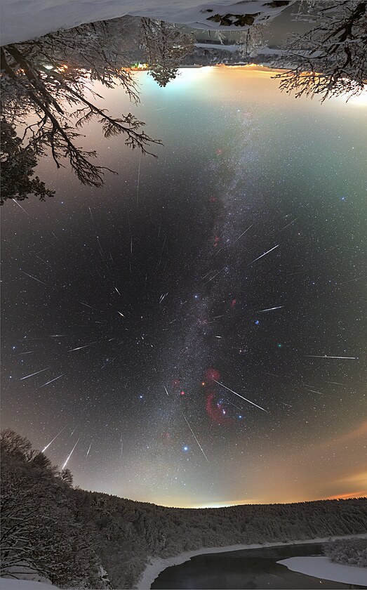Prosincové Geminidy focené v letech 2018 a 2021.