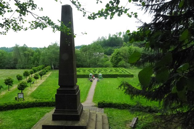 Od pomníku je možné spatřit jak zbytky hradu, tak zámek, na jehož místě stával bratrský dům, v němž Komenský v komunitě dalších kněží bydlel pod ochranou Karla staršího ze Žerotína.