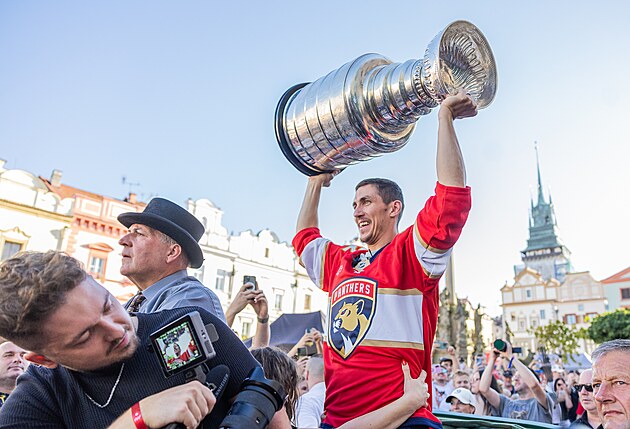 Slavná trofej váží přes 15 kilogramů a držet ho nad hlavou při jízdě na povozu není žádná legrace. Noska proto radši přidržovala manželka Eliška. (12. srpna 2025)