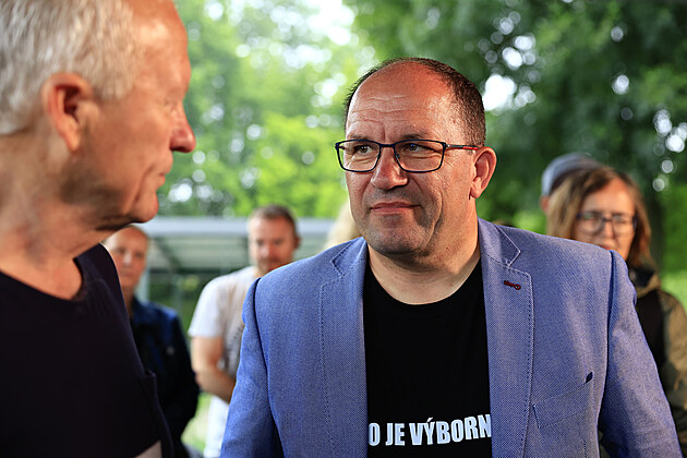 Do Veselí nad Moravou přijel i předseda lidovců Marek Výborný. (8. července 2025)