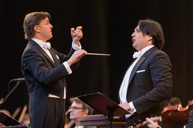 Dirigent Tomáš Netopil a basbarytonista Adam Plachetka při provedení kantáty Český poutník na Smetanově Litomyšli 2018