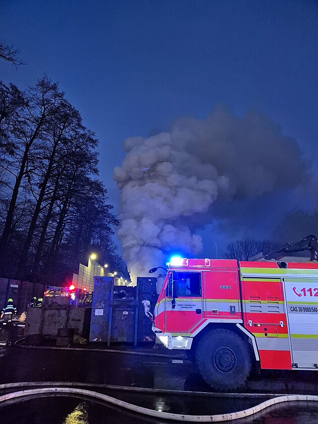 Mohutný požár zasáhl areál vysokomýtské firmy na zpracování kovového odpadu. (28. února 2025)