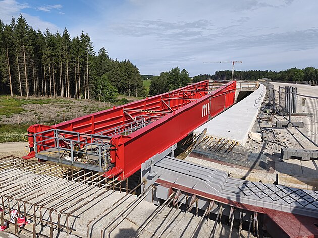 Téměř půlkilometrová dálniční estakáda je z celkem 157 stavebních objektů na celé dálnici nejnáročnější. (24. července 2025)