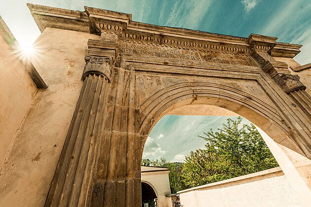 Vstupní portál do zámku z roku 1492 je nejstarší dochovanou renesanční památkou na sever od Alp.