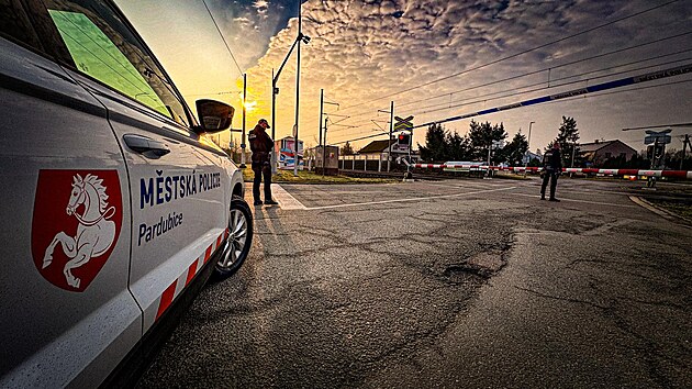 Strážníci v Pardubicích museli kvůli krádeži kabelů a poškození zabezpečovacího zařízení uzavřít frekventovaný železniční přejezd v Dašické ulici. (25. března 2025)