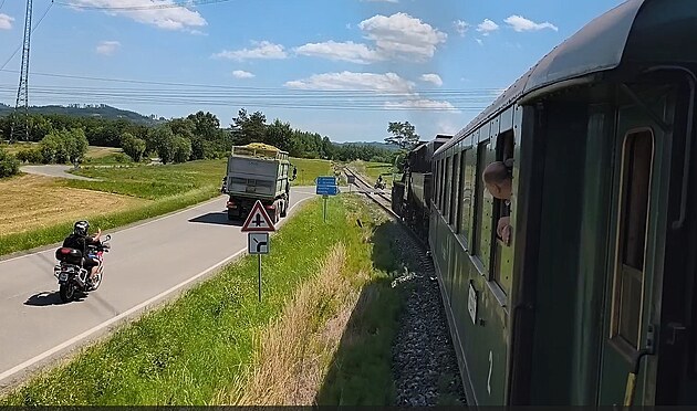 Motorkář u Velkých Opatovic vjel na železničním přejezdu před projíždějící parní vlak.