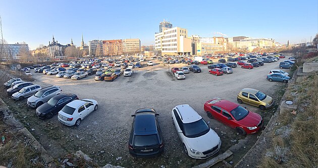 Místo po zbořeném Kulturním domě Inwest mezi Americkou třídou a Denisovým nábřežím v Plzni (8. 2. 2023) )