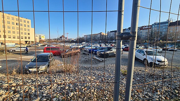 Místo po zbořeném Kulturním domě Inwest mezi Americkou třídou a Denisovým nábřežím v Plzni (8. 2. 2023) )